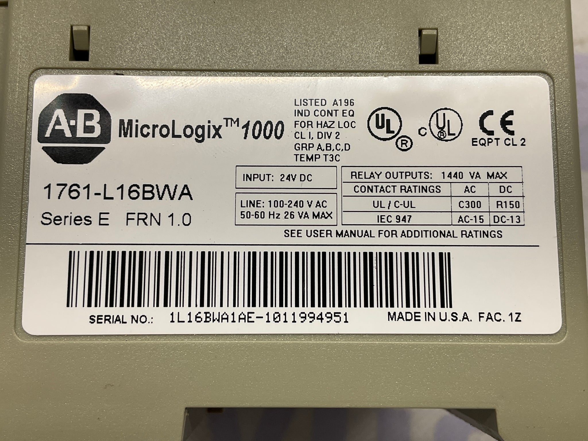 Allen Bradley 1761-L16BWA Ser E FRN 1.0