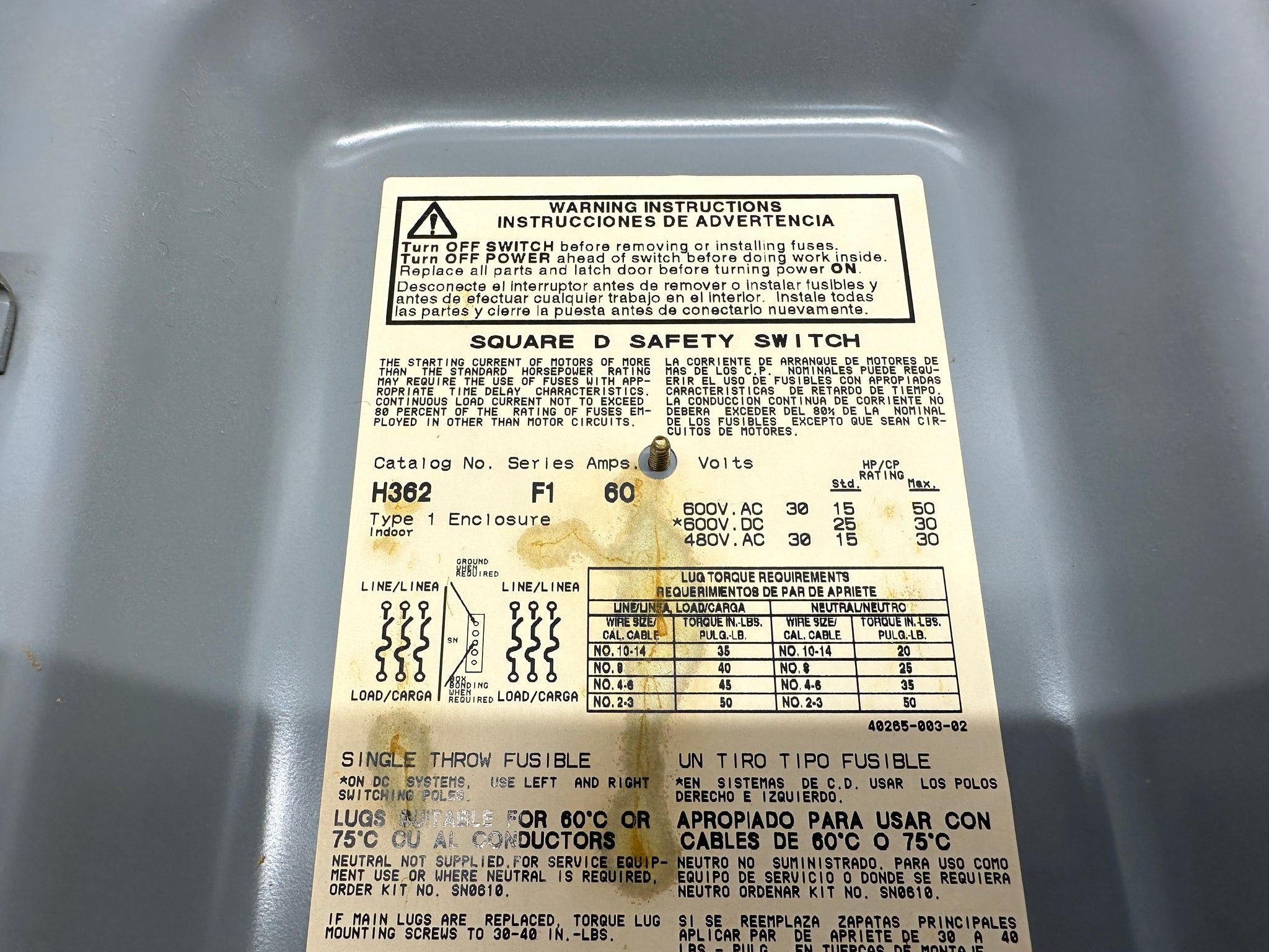 SQUARE D H362 SERIES F1 60 AMP
